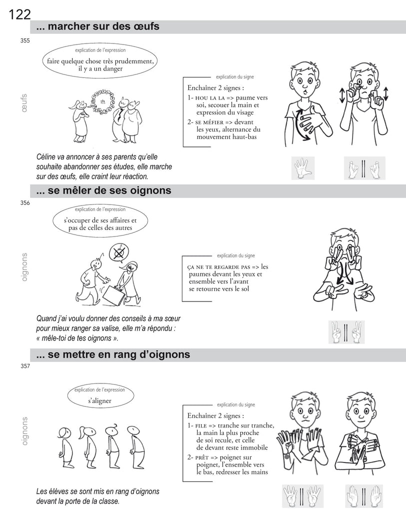Conçu pour les Sourds mais c'est aussi une invitation pour les Entendants à découvrir les propositions en LSF des expressions et de constater que le sens prime dans la traduction en signes.
